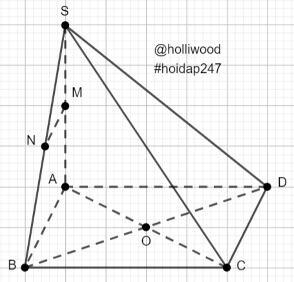 Cho hình chóp tứ giác S.ABCD có đáy ABCD là hình vuông. Gọi lần lượt M,N là trung điểm của SA,SB.