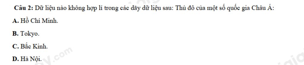 `D ->` Thủ đô Việt Nam