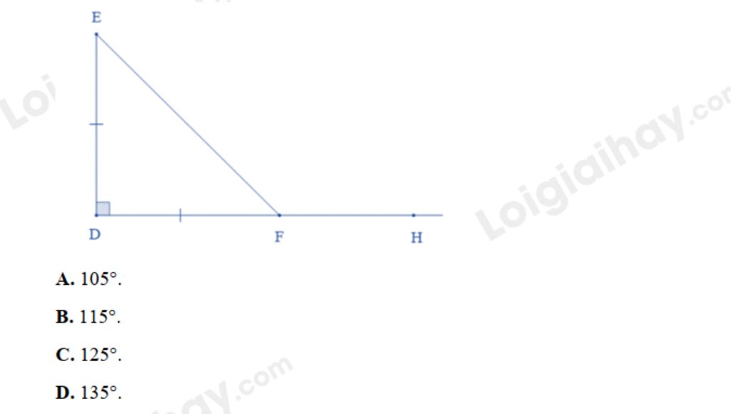 Trong `\Delta EDF` có `: DE = DF ; hat{EDF} = 90^o`