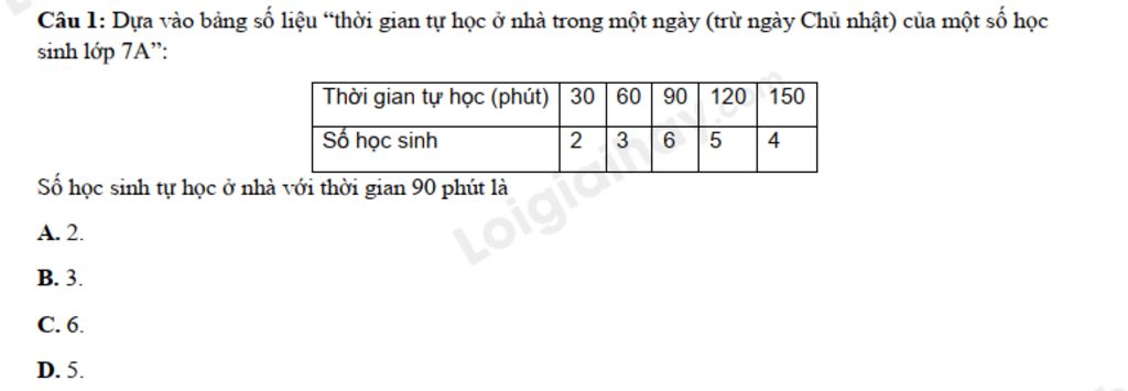 `-` Nhìn hình ta thấy: Số học sinh tự học ở nhà với thời gian 90 phút là 6 học sinh.