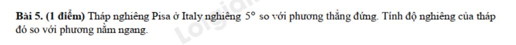 Độ nghiêng của tháp so với phương nằm ngang là :