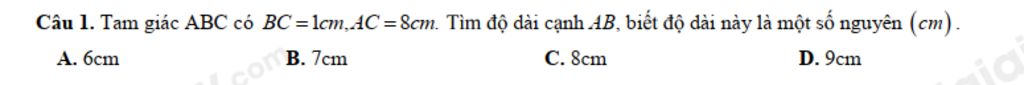 Sửa kết luận: `=>` Chọn `bb C.` vì 7`cm<8cm`