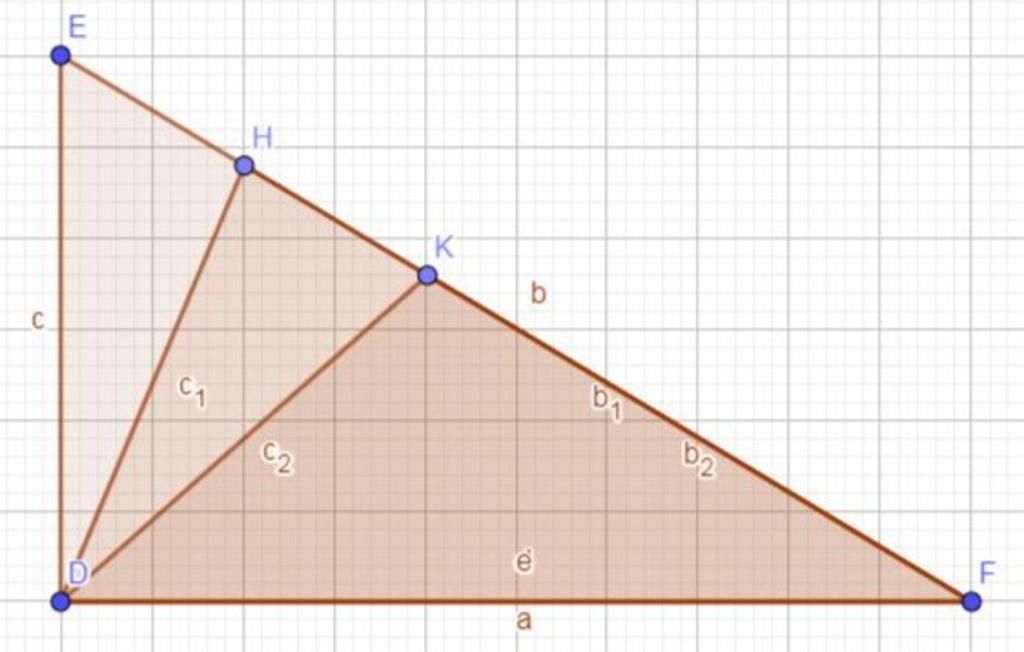 Có: `ΔDEK` và `ΔDKF` là `2` tam giác có chung đường hạ từ `D` xuống `EF`