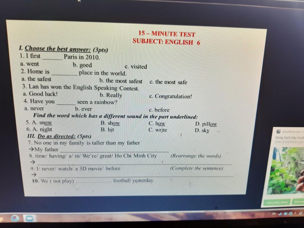 3. Lan has won the English Speaking Contest.
