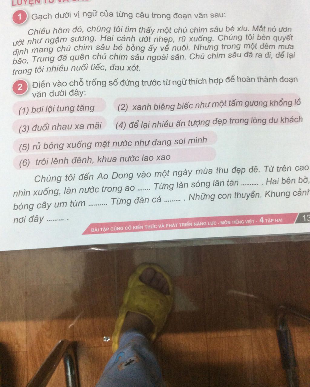 ` ( 5 ) ` Những trong một đêm mưa bão, Trung đã quên chú chim sâu ngoài sân