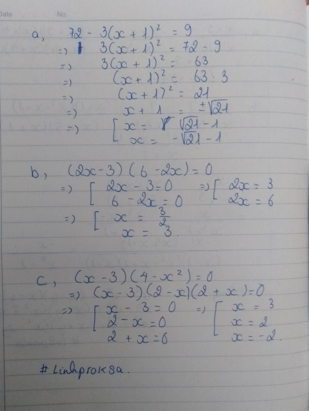a. 72-3(x+1)^2 =9