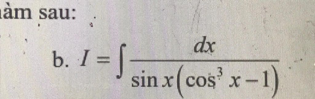 I = \int {\dfrac{{dx}}{{\sin x\left( {{{\cos }^3}x - 1} \right)}}} \\