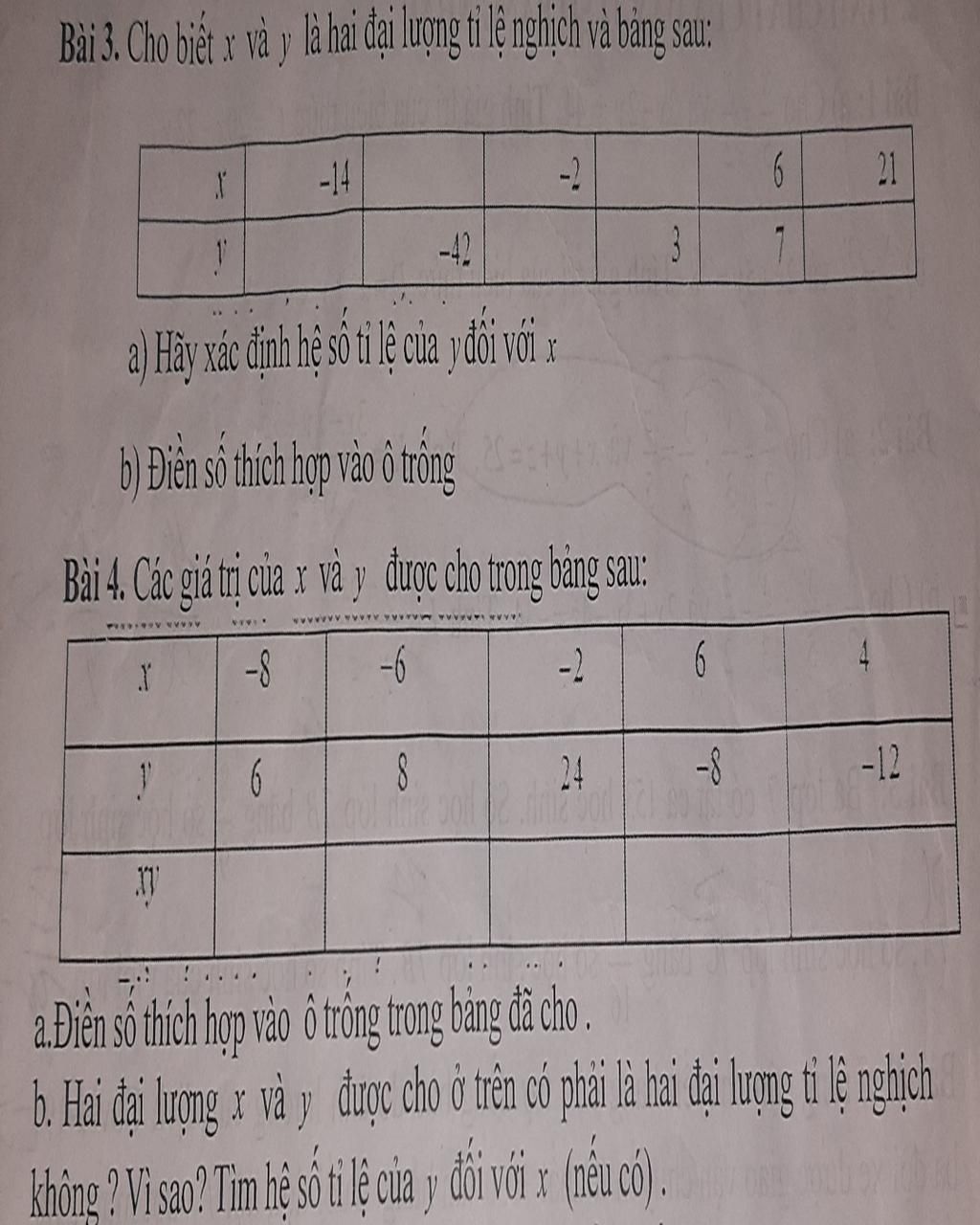 Mà `x y` đều cho ra cùng `1` giá trị nên đây là hai đại lượng tỉ lệ nghịch. `HSTL `của `y` đối với` x` là `− 48 `.