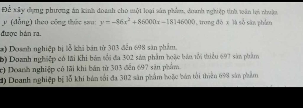 hay doanh nghiệp lỗ khi bán tối đa `302` sản phẩm hoặc tối thiểu `698` sản phẩm