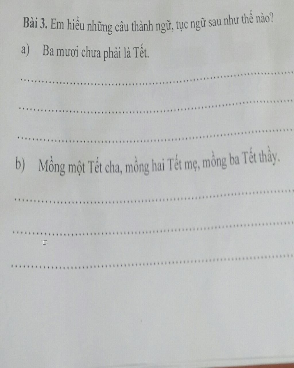 `b`) Mồng một Tết cha, mồng hai Tết mẹ, mồng ba Tết thầy