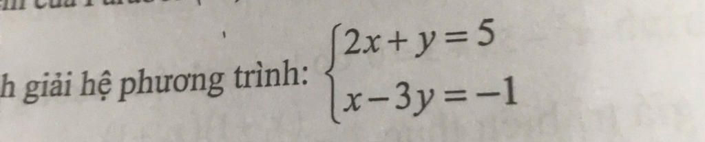 `{(2x+y=5),(x-3y=-1):}`