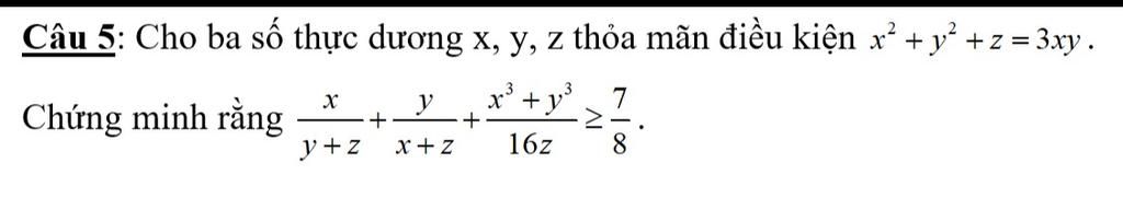 `>=x/(y+xy)+y/(x+xy)+((x+y)(x^2-xy+y^2))/(16xy)`(`z<=xy`)