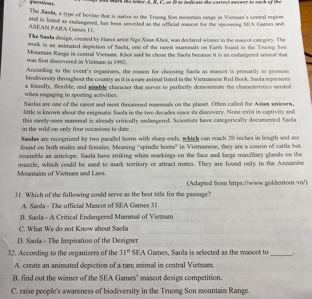 Saola - The official Mascot of SEA Games 31: Saola - Linh vật chính thức của SEA Games 31