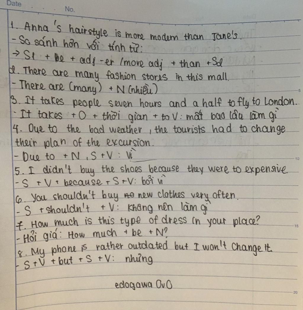 It takes + O + time + to V: mất bao nhiêu thời gian làm gì