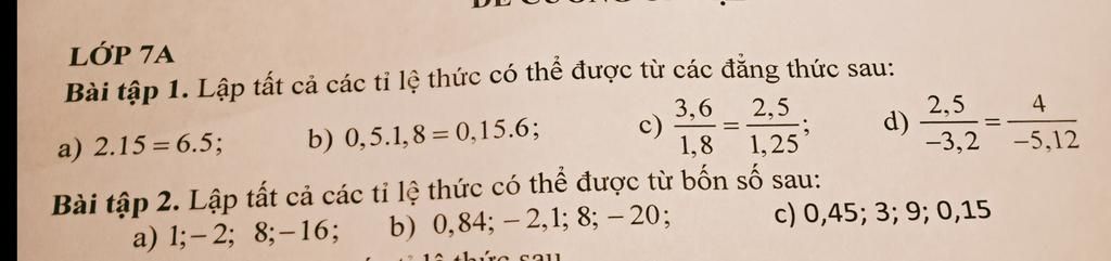 `(3,6)/(1,8)=(2,5)/(1,25);(3,6)/(2,5)=(1,8)/(1,25);(1,25)/(1,8)=(2,5)/(3,6);(1,25)/(2,5)=(1,8)/(3,6)`