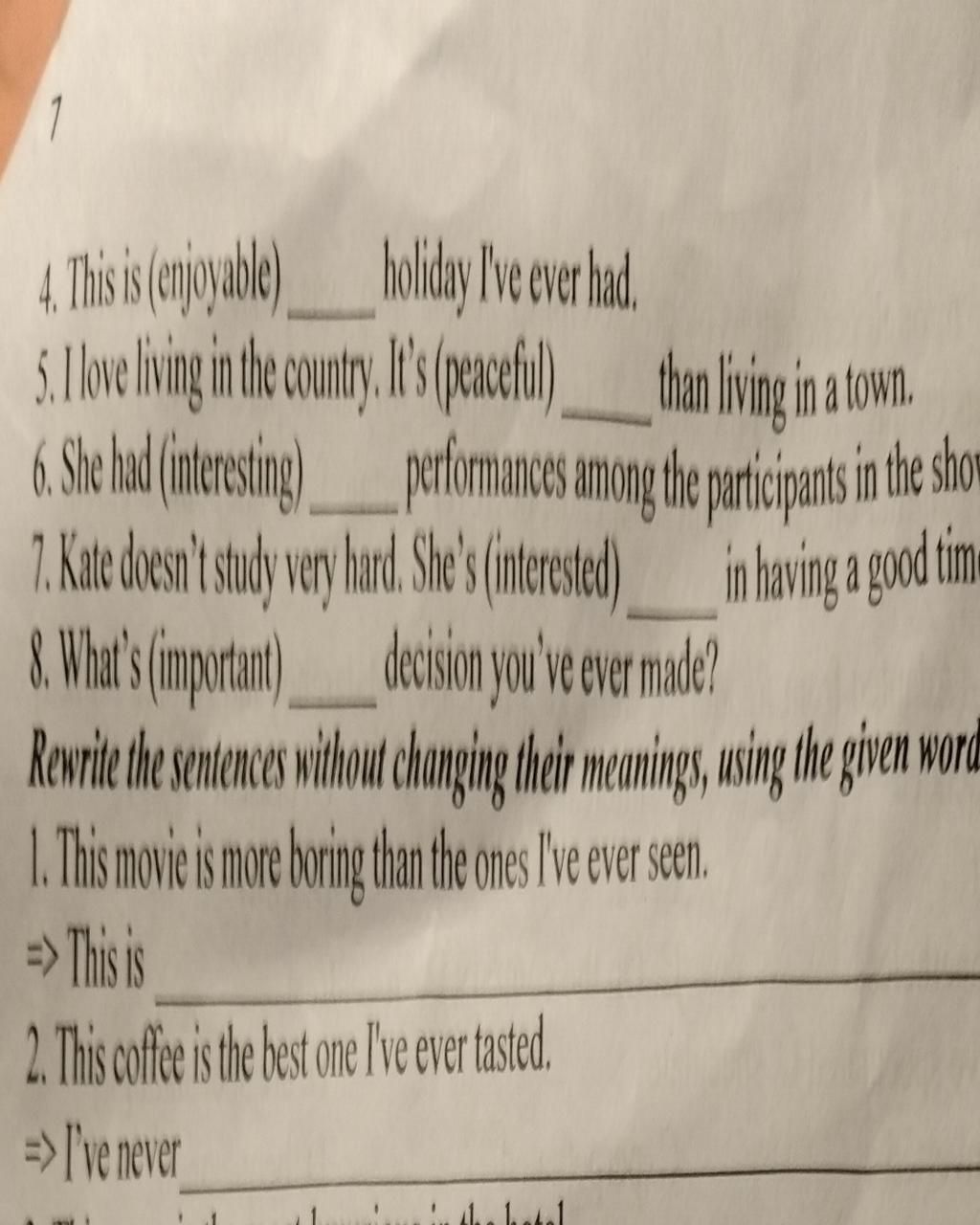 5. I love living in the country. It's (peaceful)____ than living in a town.