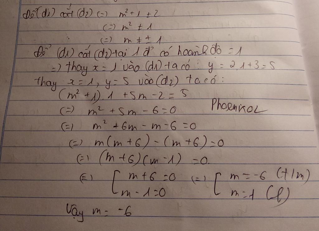 `<=>`\(\left[ \begin{array}{l}m-1=0\\m+6=0\end{array} \right.\)
