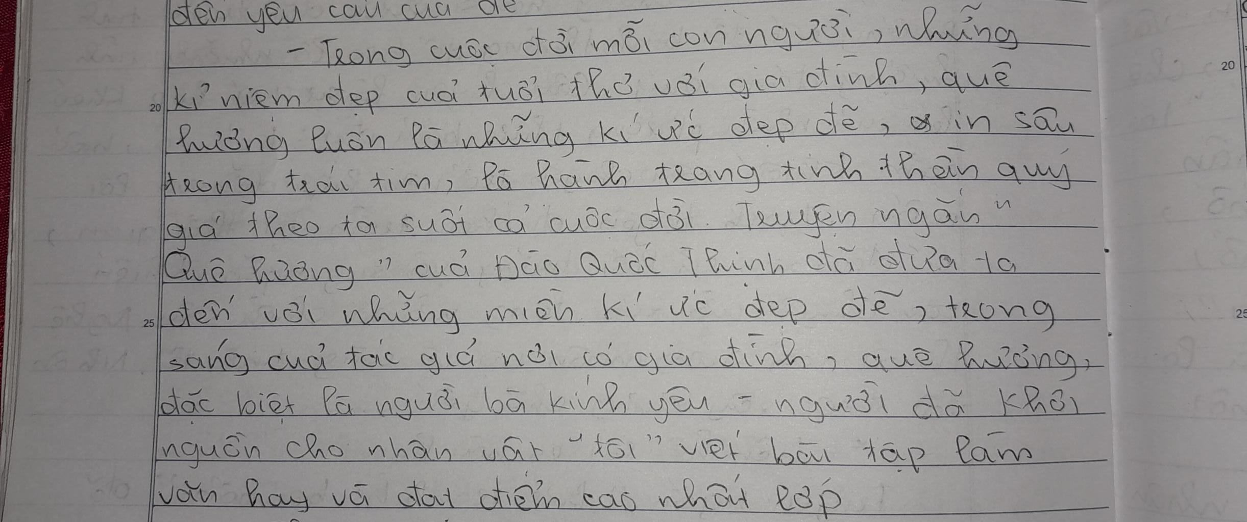 Cả lớp lặng im, những con mắt đổ dồn về phía tôi khi nghe tôi đọc xong bài văn tả phong cảnh quê hương được cô giáo cho điểm cao nhất lớp hôm nay. Cô giáo đi lại gần, hỏi tôi thoáng một chút nghi ngờ: