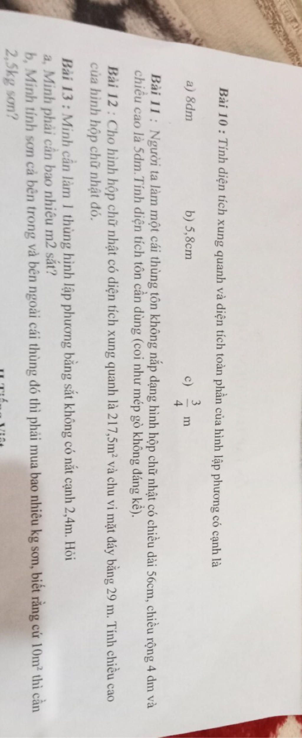 c)Diện tích xung quanh của hình lập phương là:(3/4x3/4)x4=2,25(m²)