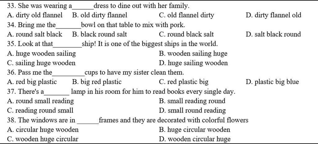 D sai thứ tự từ và sai nghĩa vì có từ blue