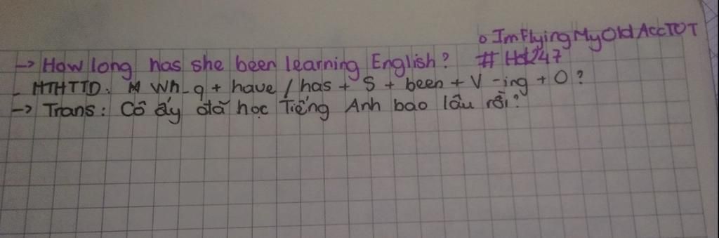 `->` Cô ấy đã học tiếng Anh được bao lâu rồi`?`