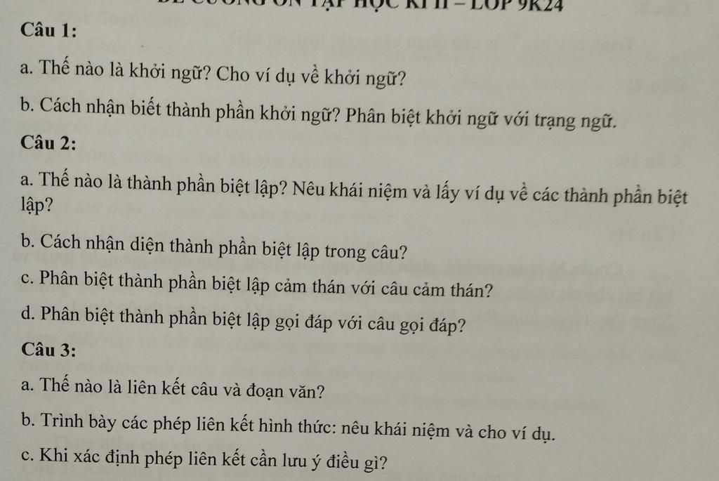 a. Thế nào là khởi ngữ? Cho ví dụ về khởi ngữ?