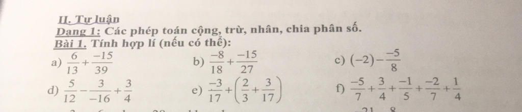`a)` `6/13+(-15/39)`