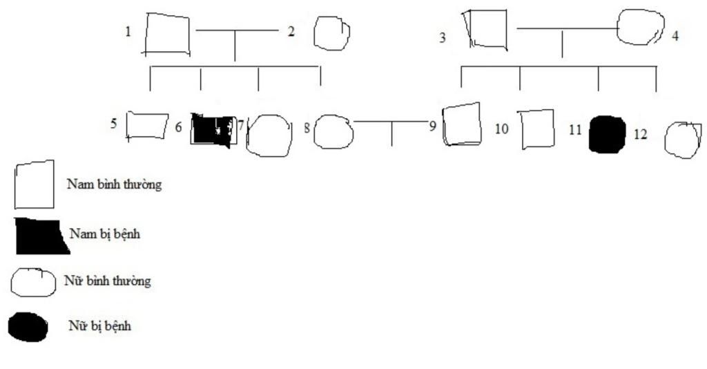 Một người đàn ông quen một người phụ nữ. Khi tìm hiểu nhau để tiến tới hôn nhân thì họ phát hiện ra rằng gia đình hai bên đều có người bị bệnh bạch tạng ( bệnh do gen lặn trên nhiễm sắc thể thường gây ra ). Họ lo sợ mình sẽ sinh con bị bệnh bạch tạng nên đến trung tâm tư vấn di truyền. Nhân viên tư vấn đã vẽ ra được sơ đồ phả hệ của hai gia đình họ theo hình dưới. Hãy tính xác suất để nếu họ kết hôn với nhau, họ có thể sinh ra hai đứa con đều bị bệnh bạch tạng