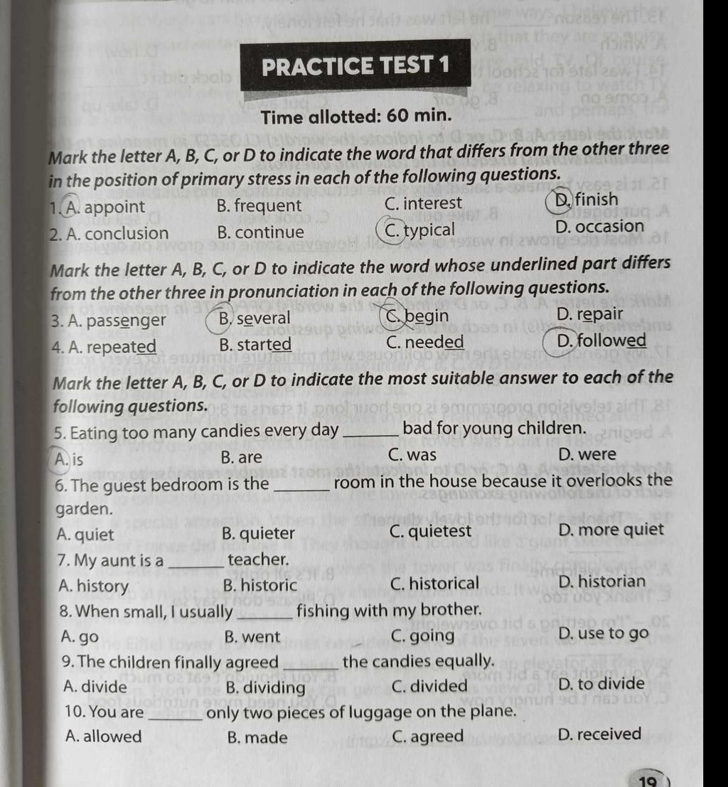 Mark the letter A, B, C, or D to indicate the word that differs from the other three