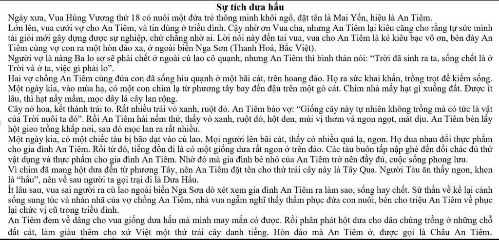 Câu 7. Nhận xét nào sau đây đúng với truyện Sự tích dưa hấu ?