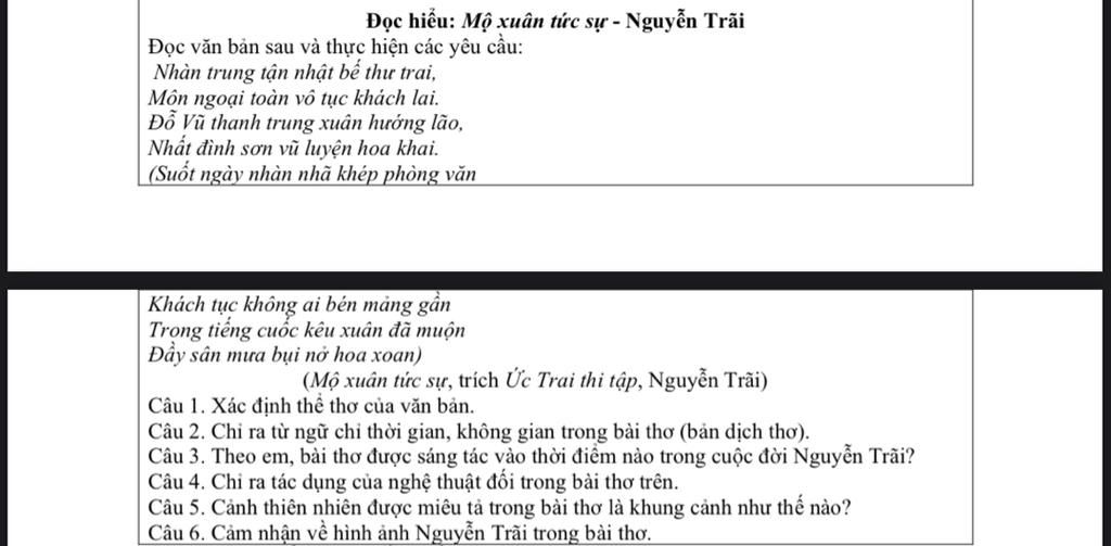 Đọc hiểu: Mộ xuân tức sự - Nguyễn Trãi