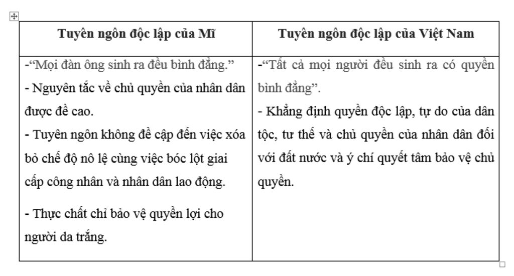 So sánh bản tuyên ngôn độc lập của Mĩ và bản tuyên ngôn độc lập của Việt Nam