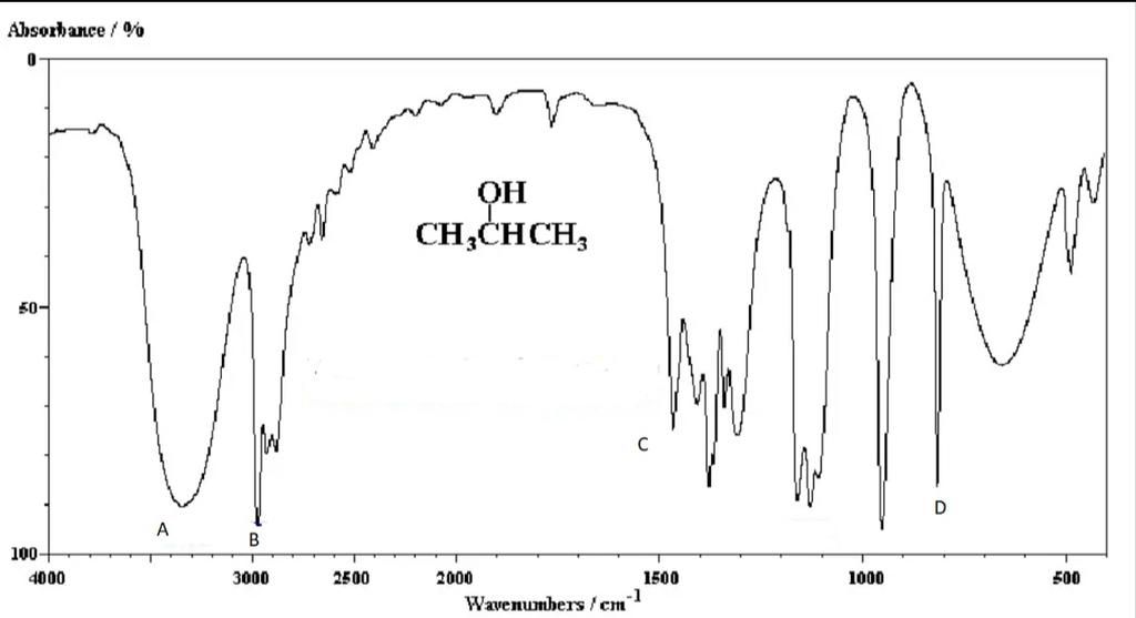 Dựa vào phổ IR của hợp chất X có công thức CH3CH(OH)CH3 dưới đây, hãy chỉ ra peak nào giúp dự đoán X có nhóm -OH