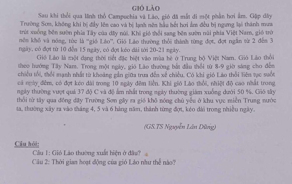 Câu `1`: gió Lào thường xuất hiện ở đâu?