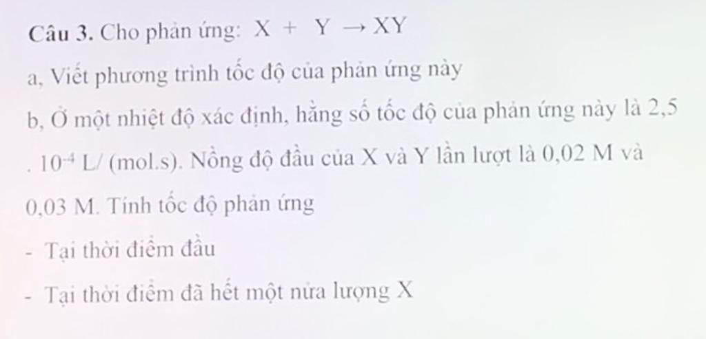 - Tại thời điểm hết 1 nửa lượng $X$, tức $[X]=\dfrac{0,02}{2}=0,01(mol.l^{-1})$ và $[Y]=0,03-[X]=0,03-0,01=0,02(mol.l^{-1})$