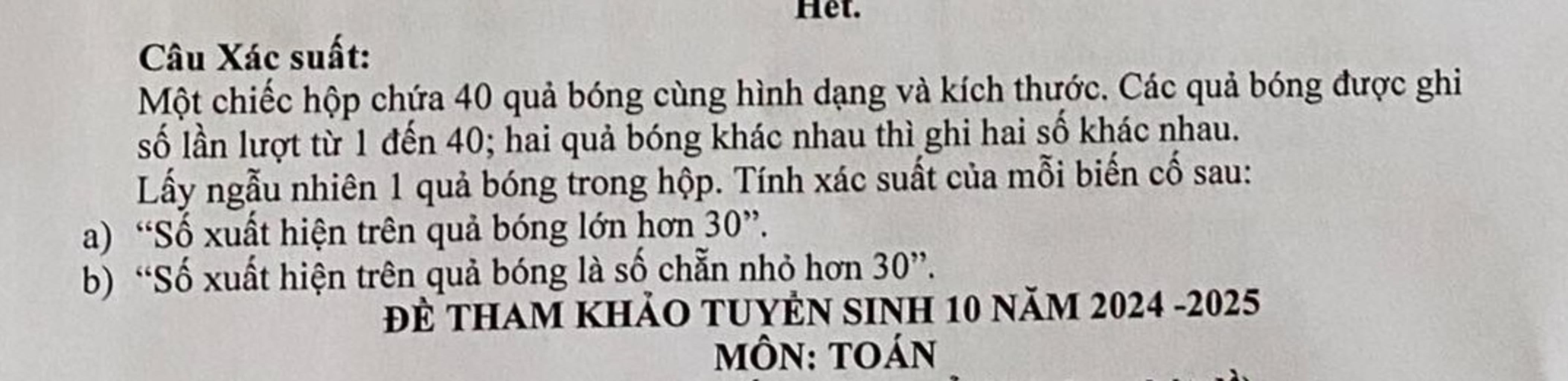 Số quả có số thứ tự >30 là :10 quả nên có 10 cách lấy