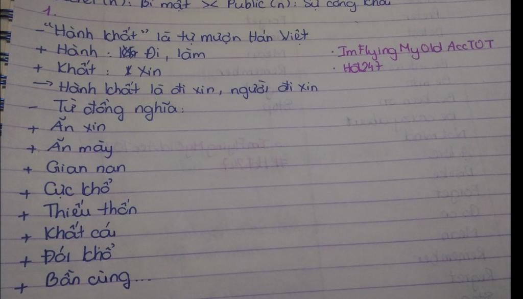 `-` Hành Khất là từ mượn của từ Hán Việt