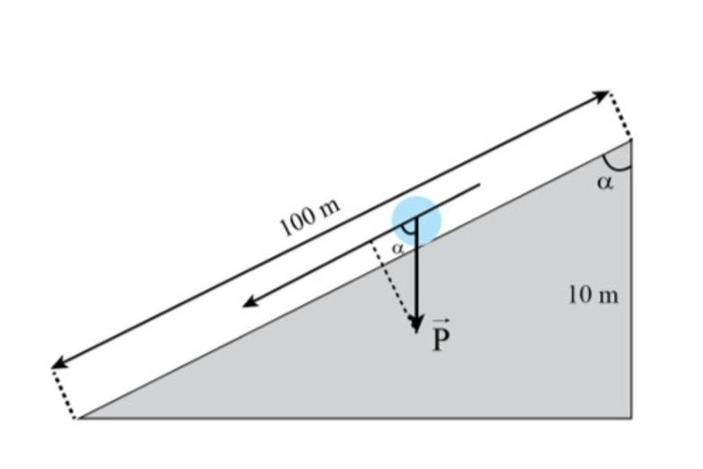 Tính công của trọng lực làm hòn đá khối lượng 5 kg lăn từ đỉnh dốc dài 100 m, cao 10 m xuống chân dốc.