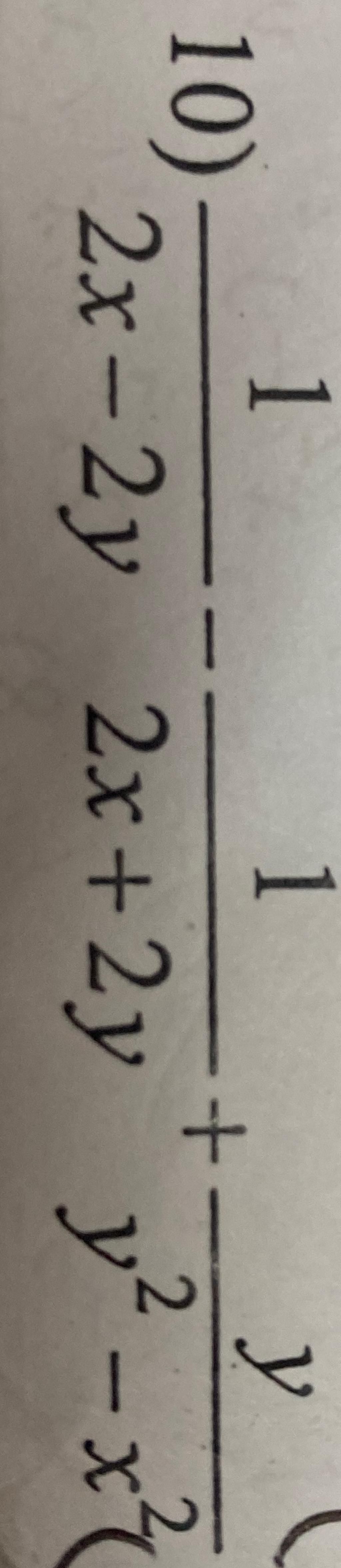 `10)` `1/(2x-2y) - 1/(2x+2y) + y/(y^2-x^2)`