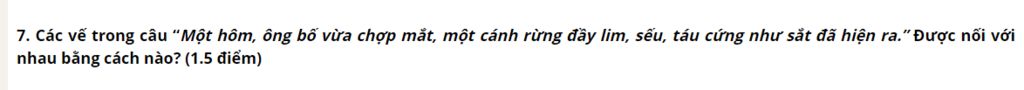 Câu “Một hôm, ông bố vừa chợp mắt, một cánh rừng đầy lim, sếu, táu cứng như sắt đã hiện ra.” được nối với nhau bằng cặp quan hệ hô ứng : Vừa.......đã..........