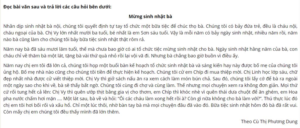 Qua bài văn em rút ra được là cần phải biết qua tâm,yêu quý bà (khi còn có thể) bằng những hành động thiết thực nhất.