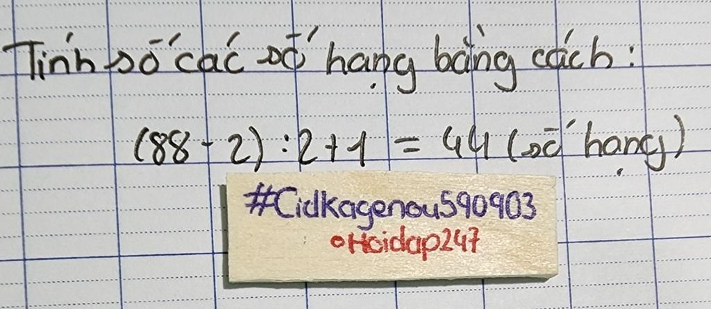 Cho dãy số: 2, 4, 6, 8, 10, ……………88. Dãy trên có bao nhiêu số hạng?
