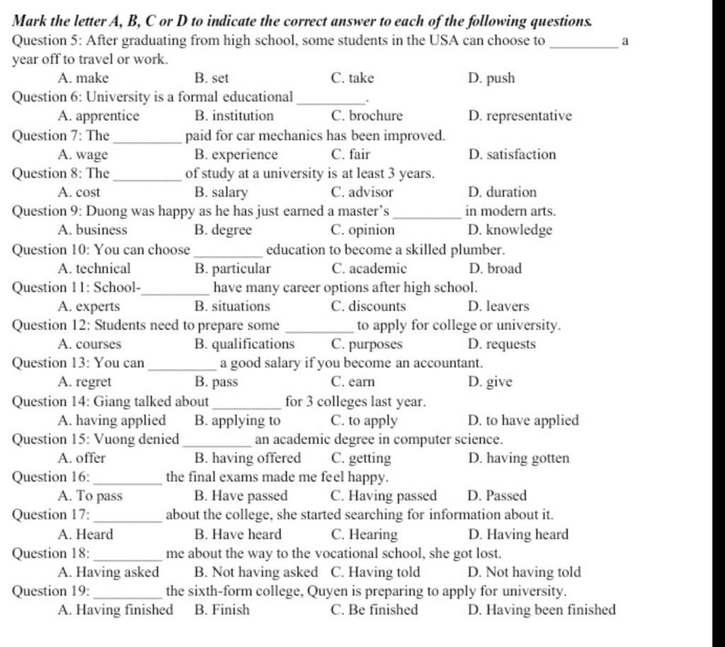 school -leaver (n) học sinh tốt nghiệp trung học phổ thông