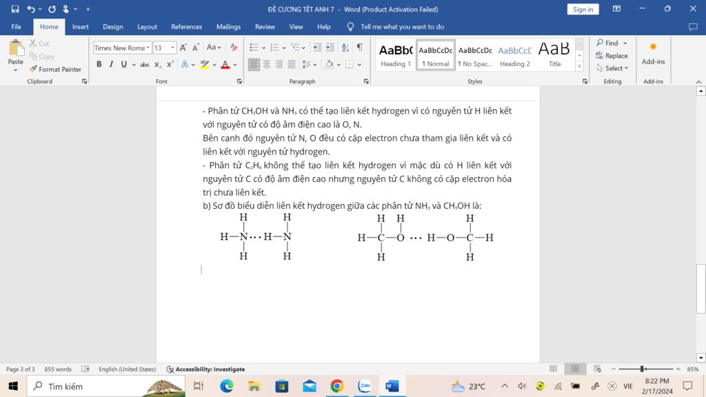 Biểu diễn liên kết hydrogen giữa các phân tử sau: