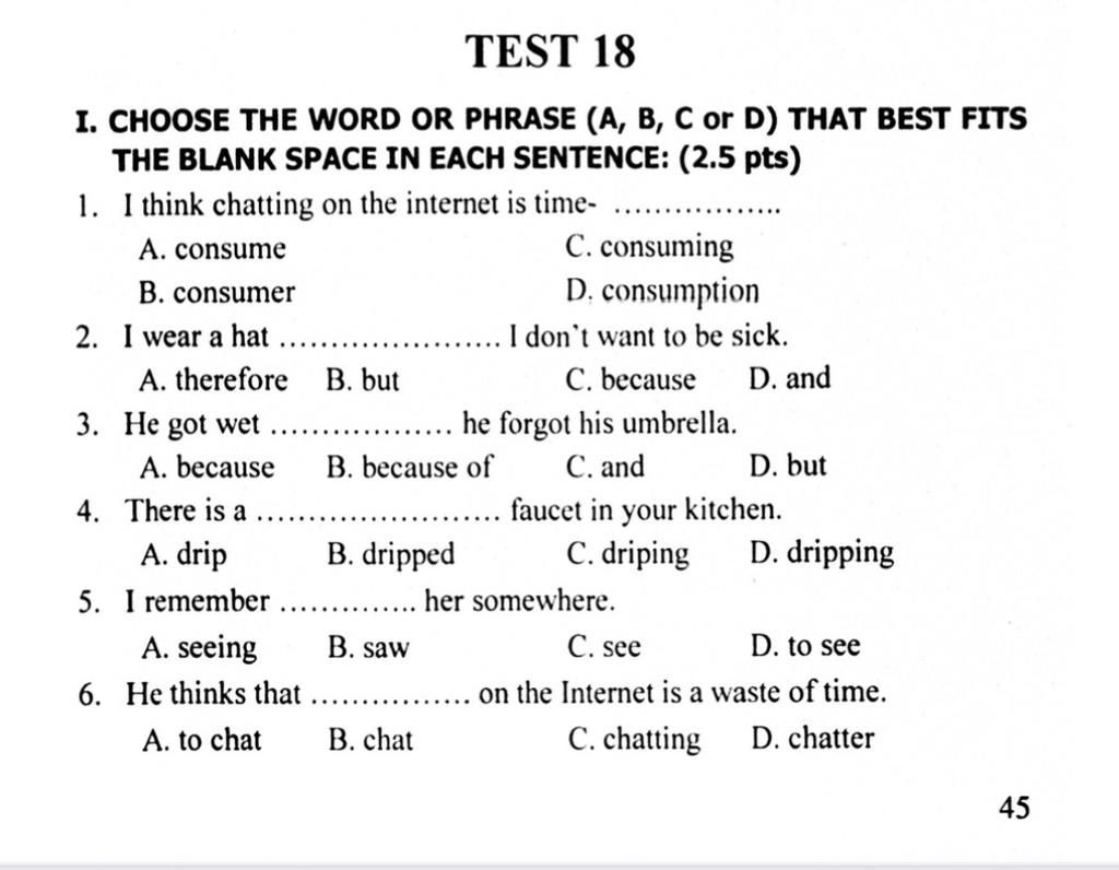 `B.` because of + N/V-ing: bởi vì