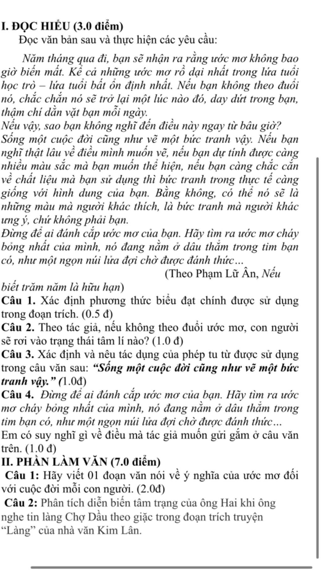 I.Đọc hiểu