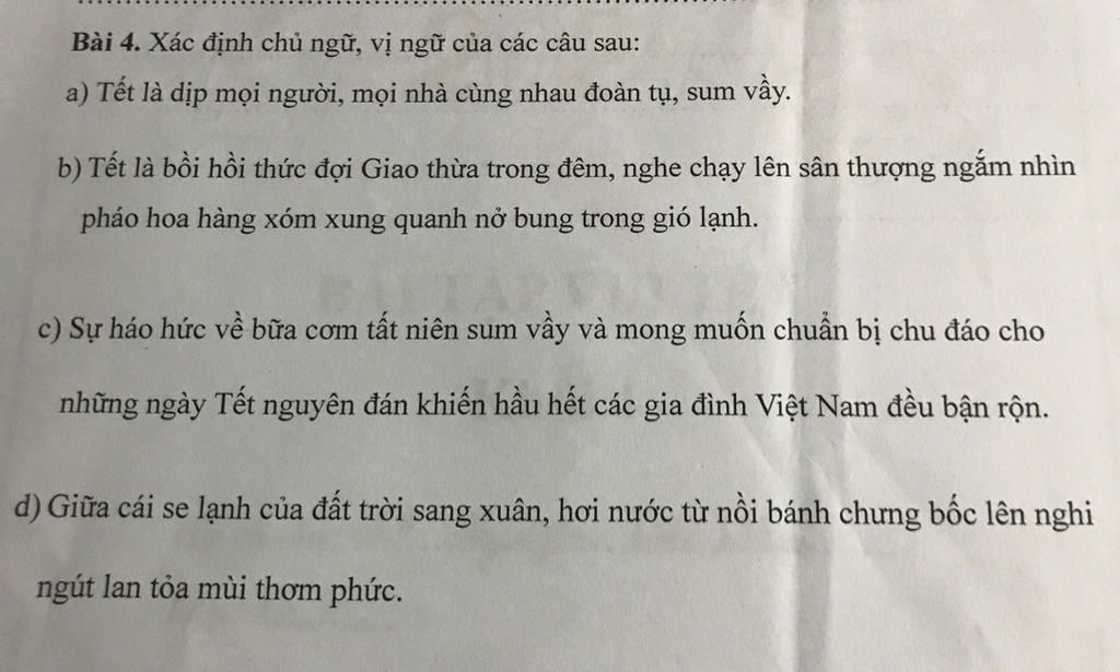 d) Giữa cái se lạnh của đất trời sang xuân, hơi nước từ nồi bánh chưng bốc lên nghi