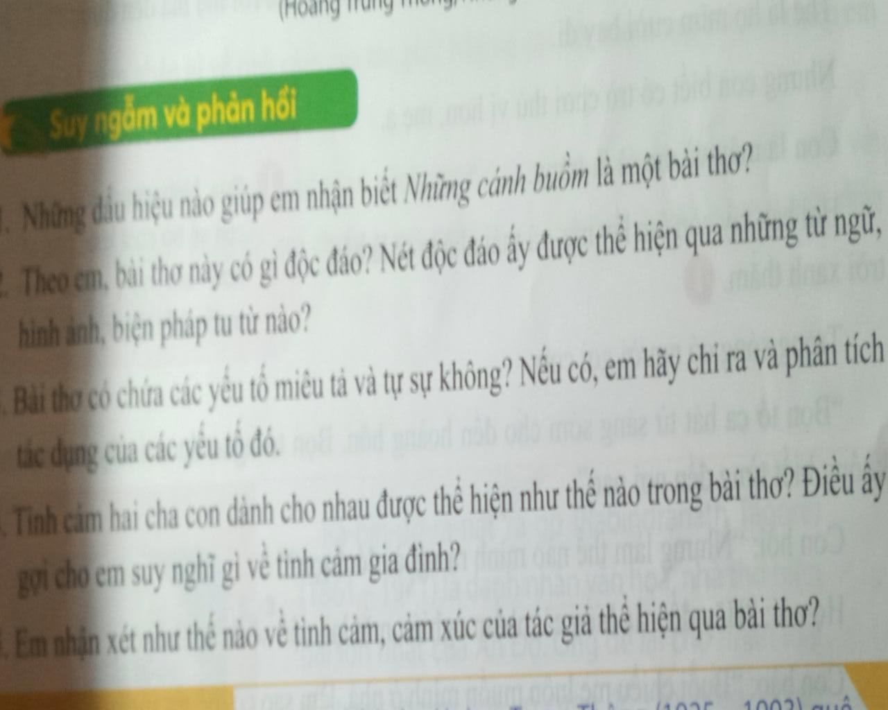 5.Qua việc đọc và tìm hiểu bài thơ em cảm nhận được:- Tình cảm, cảm xúc đầy chân thật của tác giả qua từng ngôn từ, như đang sống trong hình ảnh người cha nói ra những suy nghĩ, thể hiện tình cảm cha con- Gieo vào lòng các bạn trẻ những thế hệ sau này một khát vọng tốt đẹp cho cuộc đời.