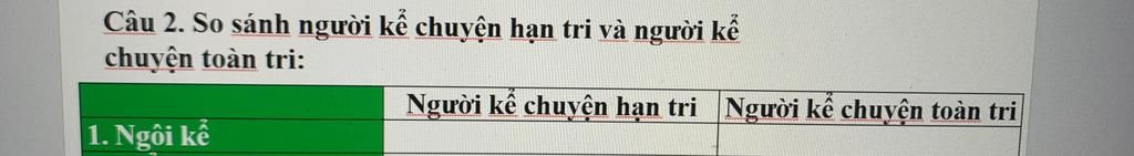 so sánh ngôi kể của người kể chuyện hoàn tri và người kể chuyện toàn tri