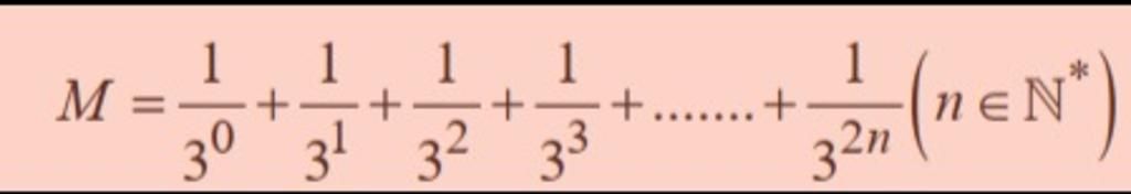 `M=1/3^0 +1/3^1 +1/3^2 +...+1/3^{2n}`